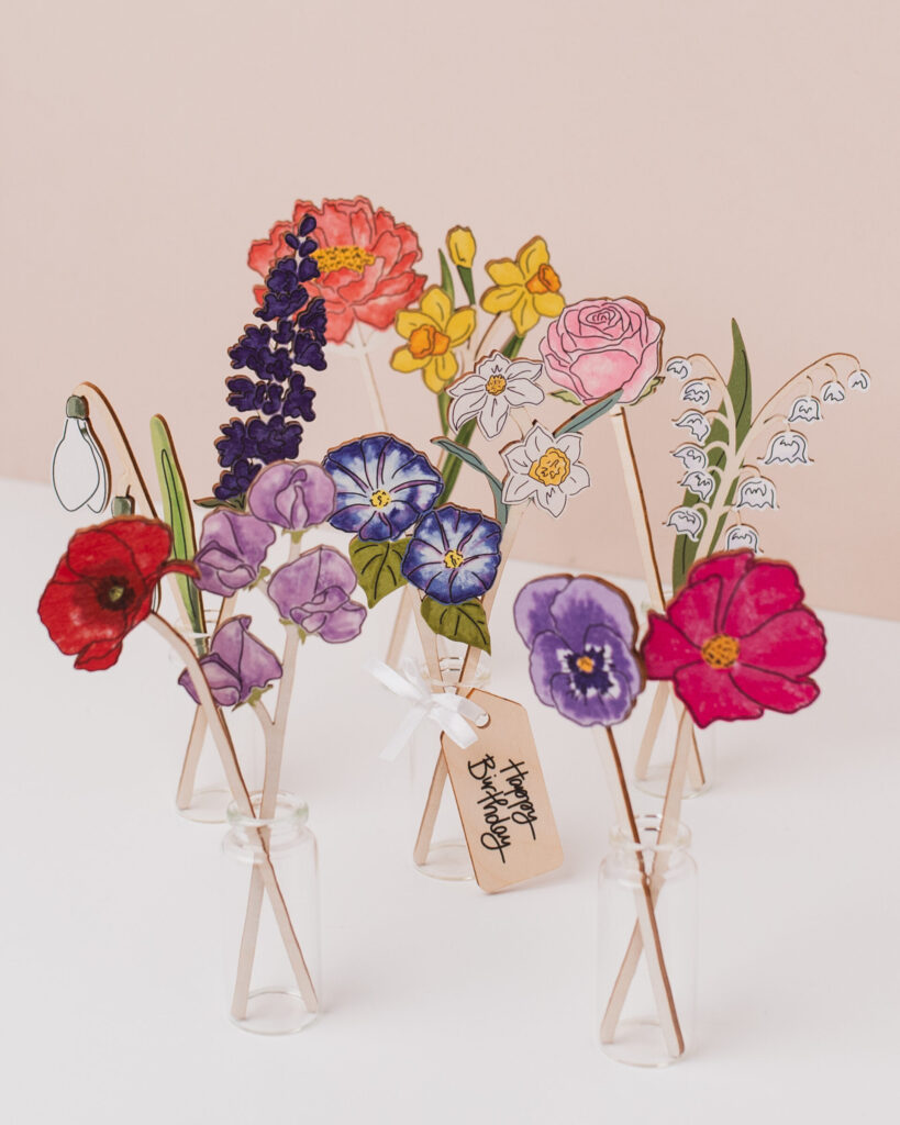 With a gorgeous array of uplifting products, from cards and prints to homewares and accessories, this week’s Friday Feature is non other than the lovely Kate from DaphneRosa. Kate’s background in textiles plays a big part in the design of her creations, with colour, pattern, and texture, all bringing her products to life. She’s become particularly well known for her wooden flowers and the option to add a personalised touch.