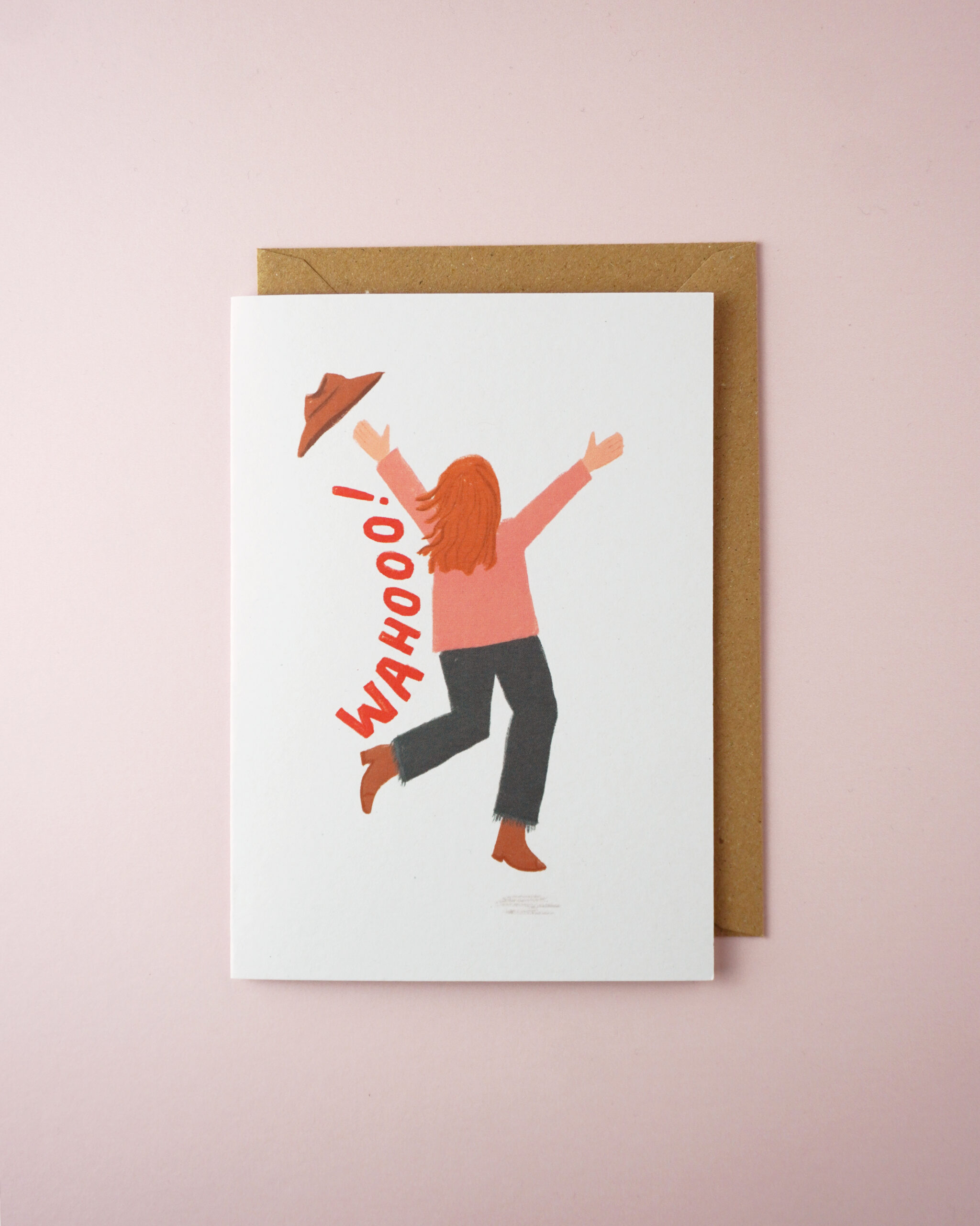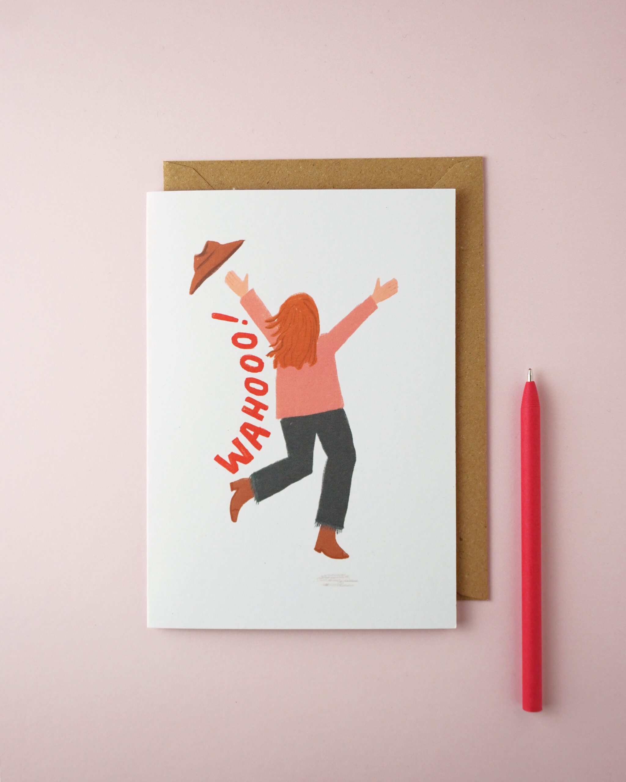 Jade Fisher – Jade is an illustrator based in Wales, UK. With the help of her childhood friend, Lauren, she creates playful cards, paper goods, and gifts that inspire kindness and connection. All of her cards are printed on recycled board. Her “wahooo!” celebration card is a great way to cheer a creative friend’s proud achievements, big announcements, and moments of personal strength. See our full collection of Jade Fisher cards.