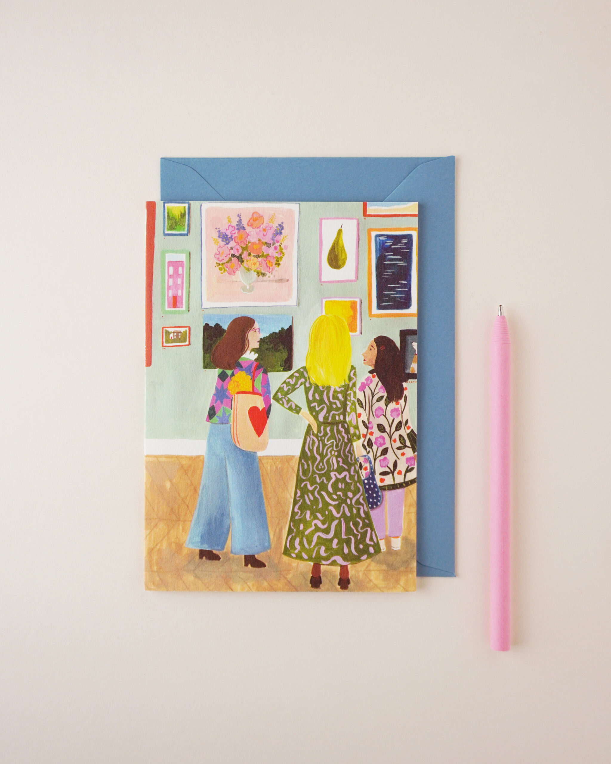 Peggy & Kate Peggy & Kate – Kate is an illustrator based in Whitstable, UK. She creates heart-felt, relatable, gouache and pencil designs, inspired by quiet moments of joy, across a range of cards, prints, wrapping paper, and original paintings. Her art lovers gallery card is perfect for any creative friends who appreciate art.